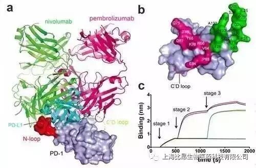 图1、 nivolumab 与 PD-1 的相互作用及其与 pembrolizumab 作用模式比较