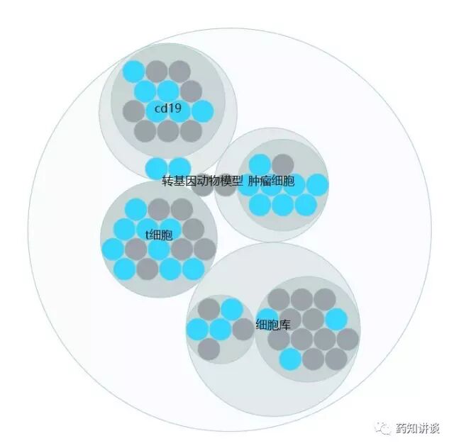 Novartis公司的合作者June教授截止目前共参与发明了61项PCT国际专利,作为申请人申请了31项PCT专利,其专利涵盖了CD19靶点、T细胞、肿瘤细胞、细胞库、转基因动物模型等多领域(参见图1,其中蓝色代表June教授作为申请人的PCT专利)。