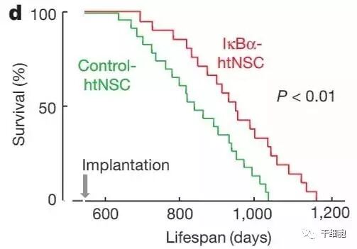 既然干细胞减少可能会影响小鼠的寿命,那么增加下丘脑里的神经干细胞,会不会延长小鼠的寿命呢?蔡教授的团队在小鼠的下丘脑内注射了两种不同的神经干细胞:第一种未经改造,注射后很容易就会死亡,相当于没注射;第二种经过了改造,注射后能存活很久。研究发现,后一种干细胞可以延长小鼠寿命达10%。